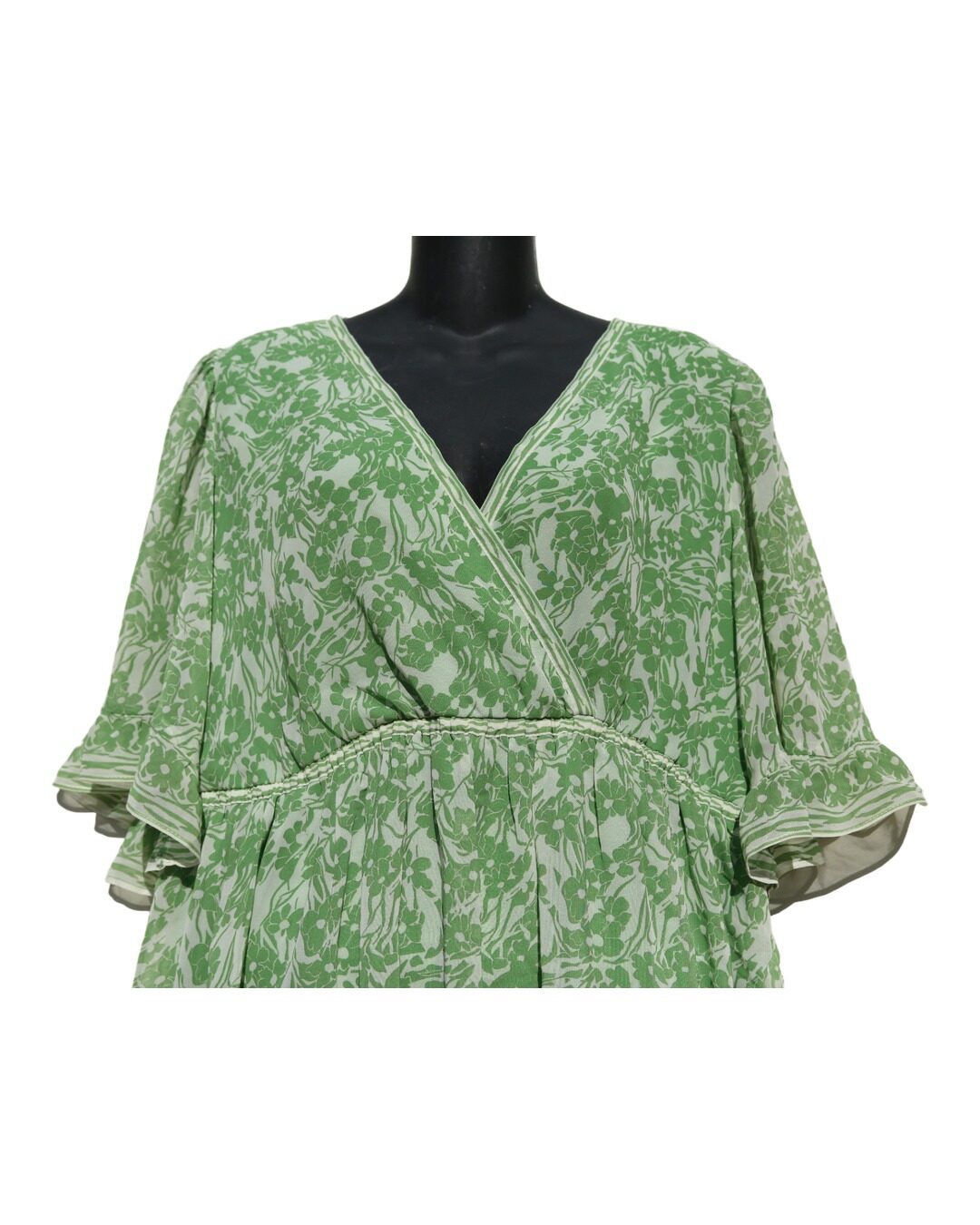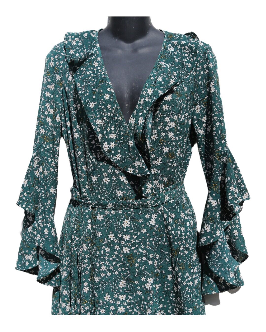 Vestido Floral Verde Wrap con Volantes